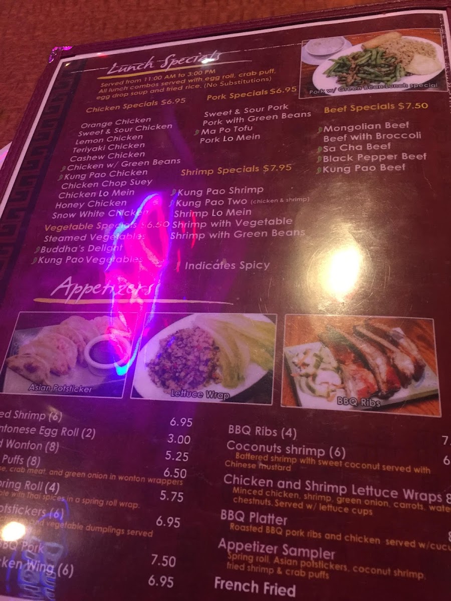 Spring roll, Asian potstickers, Coconut Shrimp, Fried Shrimp & Crab Puffs.